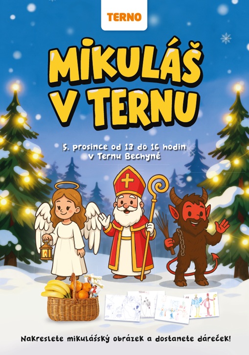 V pátek 5. prosince dorazí do Terna Bechyně Mikuláš se svou družinou! Stavte se s dětmi mezi 13:00 a 16:00 a užijte si krásné předvánoční odpoledne plné radosti a tradic.