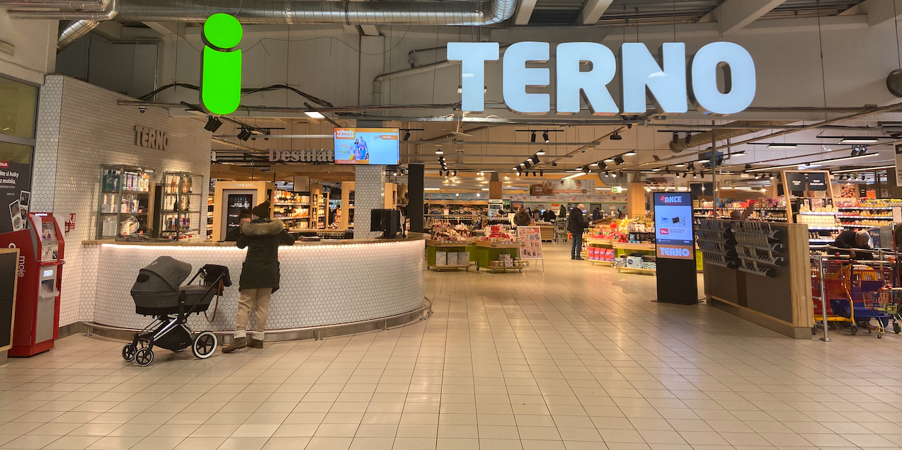 Dobíjecí stanice, Estravenka, Benefit Plus, Gusto Karta, Ticket Restaurant Card, Gastro Pass Card – Sodexo, Platba složenek, Platba faktur, Vklad hotovosti, Dobíjení kreditů, Cashback, Dárkové karty, Stravenky, Platební karty, Kopírování a skenování, Prodej stáčeného vína, Objednávka chlebíčků, Nápojové centrum, Dárková služba, Parkoviště, Pasáž, Pěstujeme pro Terno, Farmářské trhyAktuality pro Terno České Budějovice